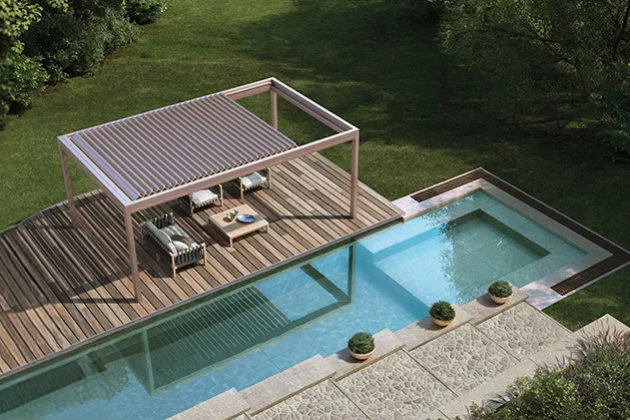 La personalizzazione è un altro punto chiave. Oltre alle dimensioni su misura, è possibile scegliere tra numerose finiture colore, abbinare una pedana strutturale in alluminio che corregge pendenze e dislivelli del terreno e integrare una serie di optional come illuminazione LED, prese di alimentazione, sistemi domotici, arredi coordinati della Living Series. Si crea così un outdoor completo, in cui pergola bioclimatica, pavimentazione e arredi parlano lo stesso linguaggio e costruiscono un ambiente esterno curato fin nei dettagli.